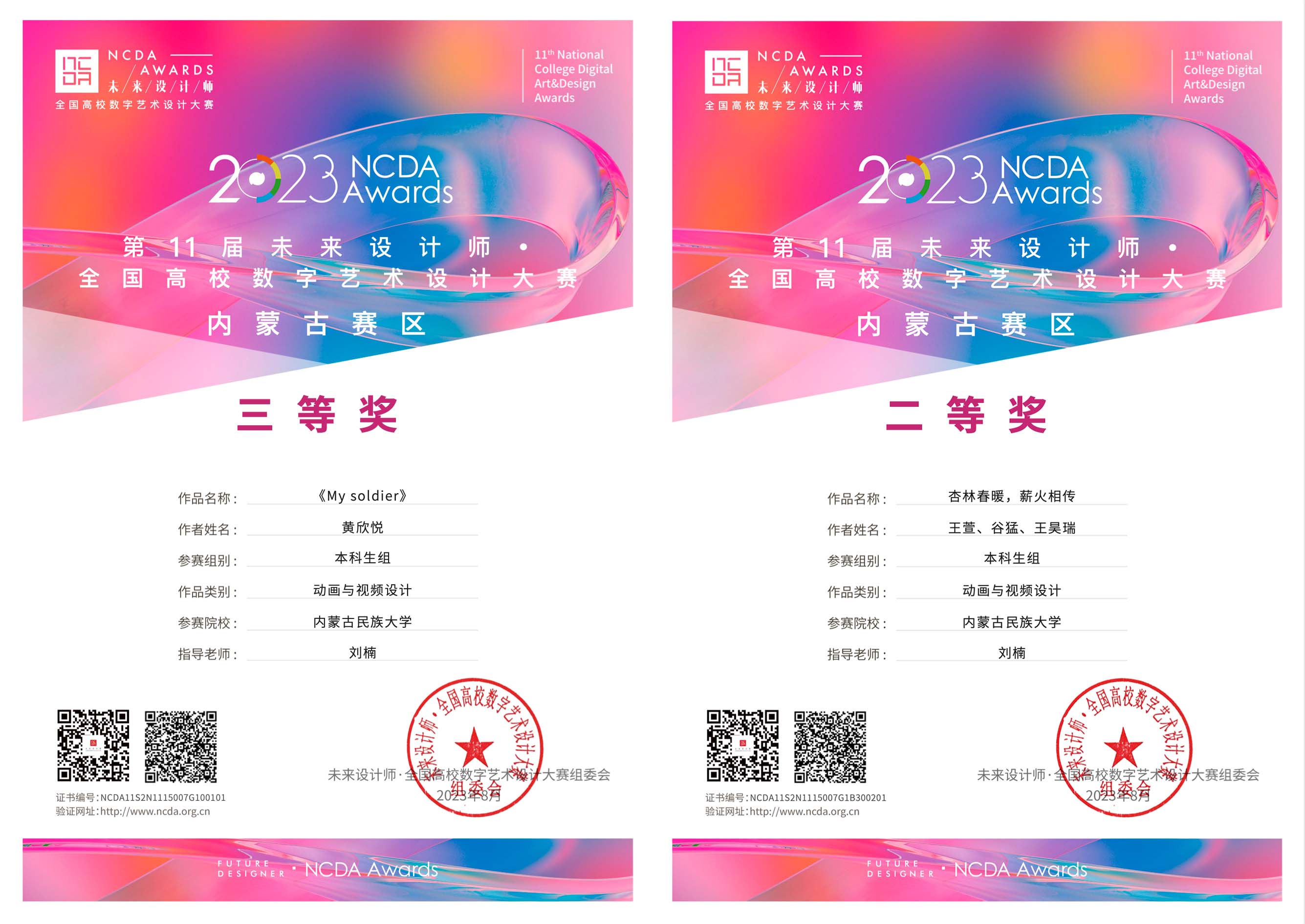 全国高校数字艺术设计大赛是由工业和信息化部人才交流中心主办,教育部中国高等教育学会认可,“学习强国”学习平台支持的国家级大学生竞赛 。美术学院由数字媒体艺术专业与视觉传达专业共同参与。我院视觉传达设计教师卜祥维和数字媒体艺术专业教师刘楠指导的王昊瑞、王萱、杜仪佳、谷猛、获内蒙古自治区省赛二等奖;黄欣悦、包乌优汉、王婧、耿璐、魏宇星晨、张佳玲获内蒙古自治区省赛三等奖。大赛取得的成绩,不仅为我校赢得了荣誉,更是进一步推进了美术学院设计专业的发展。