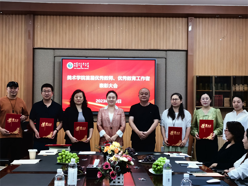 会上,杨文军宣读了《美术学院关于表彰优秀教师、优秀教育工作者的决定》。本次表彰经老师们自荐,并通过党政联席会按照评选条件充分讨论酝酿,最终认定于宏、宣宏博、白音吉力根、包海燕、孙玮宁等5位教师获评“优秀教师”荣誉称号,吴潮洛蒙、李莉丽等2位教师获评“优秀教育工作者”荣誉称号。张琪和王永波共同为获奖教师颁发荣誉证书。获奖教师结合自身多年教书育人经历进行交流发言,大家一致表示,今后将坚守初心,打造精彩纷呈的优质课堂;坚守师德,争当学高身正的模范教师;坚守责任,培养德艺双修的优秀人才。