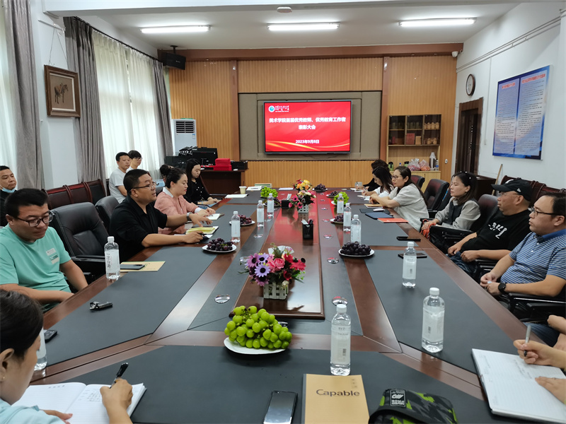 为进一步深入贯彻党的二十大精神和习近平总书记关于教育的重要论述精神,切实加强教师队伍建设,在全院范围内营造尊师重教的良好氛围,激励广大教师争做“四有”好老师。9月8日上午,美术学院在逸夫楼学院会议室召开庆祝教师节暨首届“优秀教师”“优秀教育工作者”表彰大会。学院党委书记张琪、院长王永波、获奖教师及教师代表参加会议。表彰会由学院党委副书记杨文军主持。
