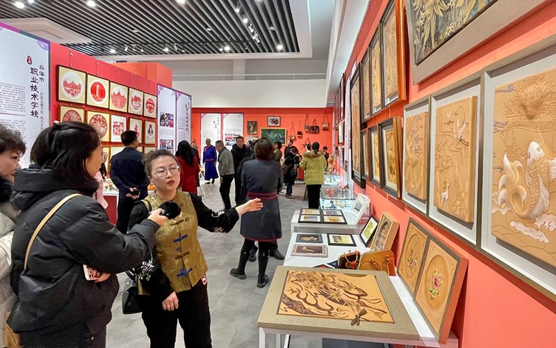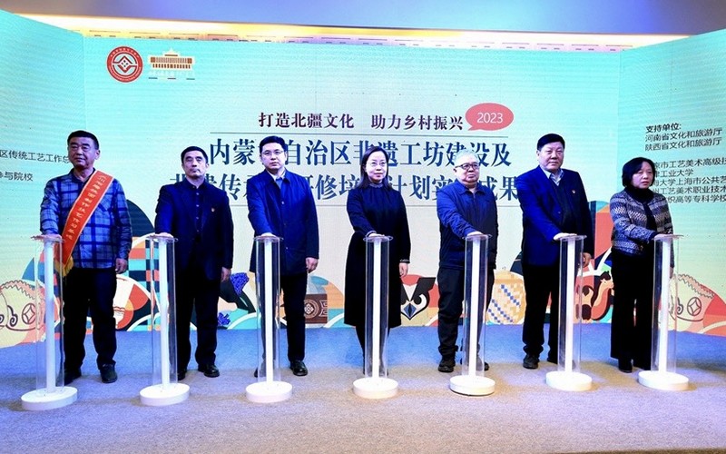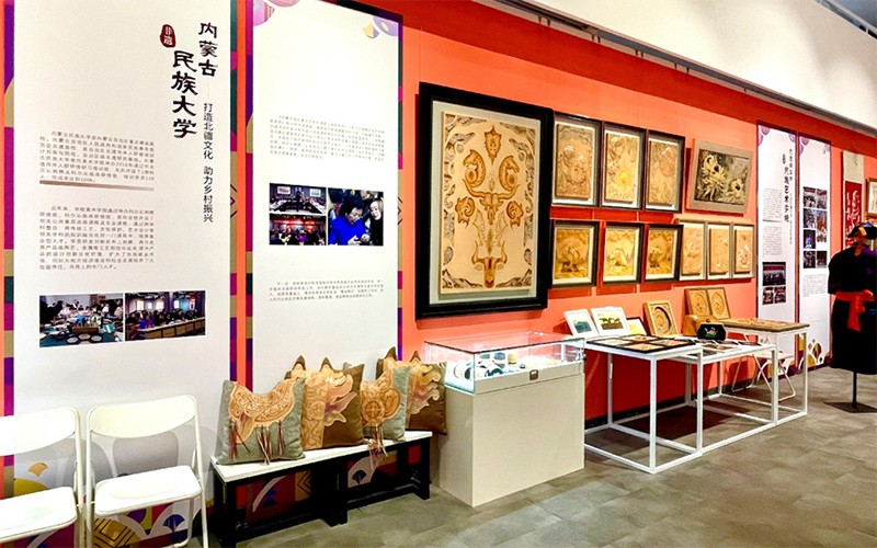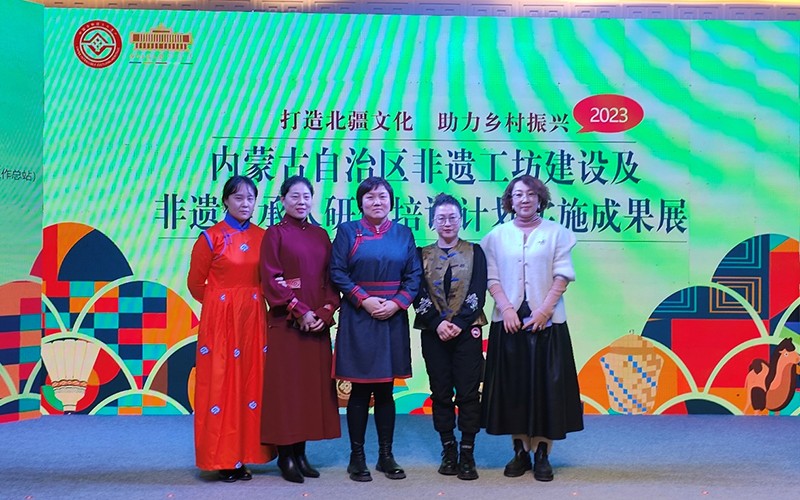 12月29日—30日,由内蒙古文化和旅游厅主办,以“打造北疆文化、助力乡村振兴”为主题的“2023年内蒙古自治区非遗工坊建设及非遗传承人研修培训计划实施成果展”,在内蒙古展览馆盛大开展。我校作为非遗传承人研修培训计划参与院校受邀参加,由社科处牵头,美术学院于宏、莫日根带队,共送展包括刺绣、版画及皮革皮雕等30余件非遗创新作品。