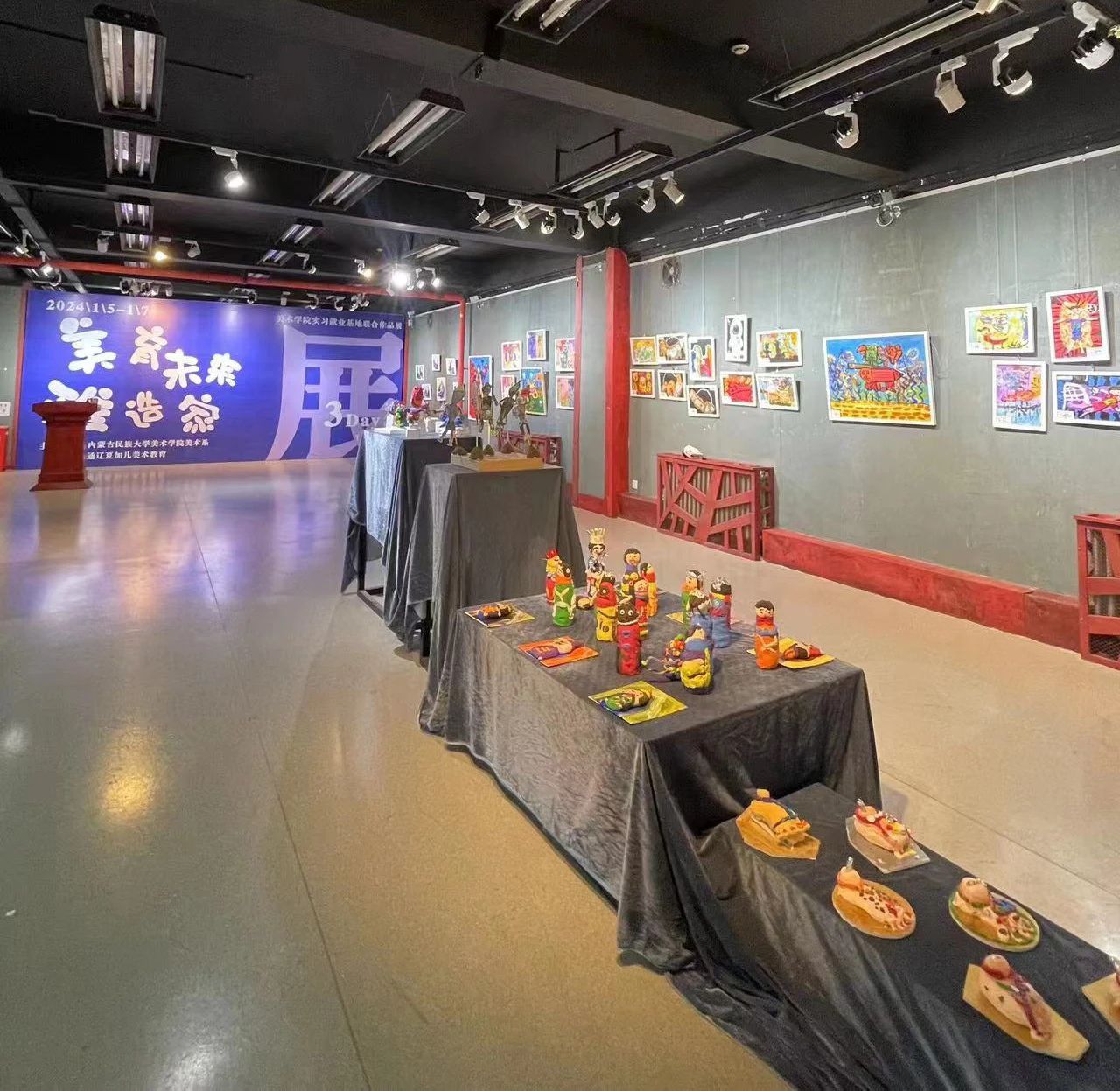 1月6日至1月10日,美术学院与实习就业基地夏加儿美术教育机构在学院二楼展厅共同举办“美育未来·稚造家”联合画展。