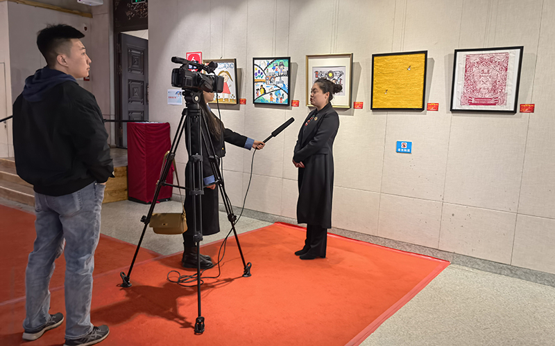 3月29日上午,通辽市科尔沁区第二中学校长王颖伦、内蒙古民族大学幼儿园园长韩春玲一行来到美术学院参观“感党恩、听党话、跟党走”“向美而行·艺起向未来”美育作品联展。学院党委书记张琪、院长王永波、副书记杨文军陪同参观。科尔沁区电视台对本次展览进行了跟踪报道。