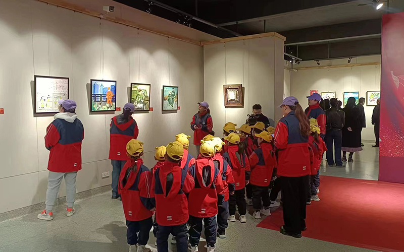 本次联展共展出各学龄段学子创作的作品60余件,是学院深化校企合作,充分发挥美育基地资源优势服务地方美育发展的积极举措。作品展现出中华优秀传统文化的独特魅力,抒发了幼儿园、小学、初中、高中和大学不同学龄段学生的浓厚爱党爱国情怀,描绘了社会主义新时代主旋律,展示验收了不同学龄学子学悟传统文化及接受美育教育的成果。