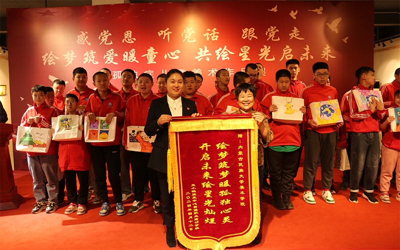 为进一步持续深入推进“感党恩、听党话、跟党走”群众教育实践活动,充分发挥学院美育基地作用,整合资源优势助力地方美育和特殊教育事业发展。4月16日上午,美术与设计学院感党恩、听党话、跟党走—“绘梦筑爱暖童心 共绘星光启未来”孤独症儿童美术作品展圆满开幕,展出作品均来自通辽市丑小鸭特殊教育学校学生所创。通辽市关工委常务副主任王宝湖,通辽市特殊教育学校校长周广红,美术与设计学院党委书记张琪,院长王永波,副院长于淼等领导和嘉宾出席开幕式,学院师生代表和丑小鸭特殊教育学校师生代表参加活动。开幕式由学院党委副书记杨文军主持。