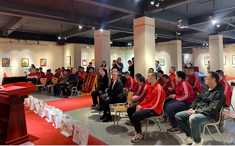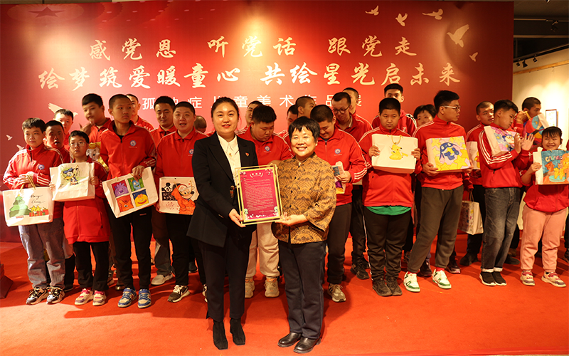 开幕式上,张琪在致辞中表示,此次画展是学院长期以来对特殊儿童美育帮扶工作的一次阶段性成果展示,它充分展现了孤独症儿童在美术创作方面的天赋和潜力,也彰显了学院师生对特殊儿童的关爱和扶持。“感党恩、听党话、跟党走”不仅是本次画展的主题,更是学院坚决贯彻落实党的教育方针,全面落实立德树人根本任务,发挥高效服务地方职能的积极举措。周广红校长在讲话中表达了对学院多年来给予特殊教育事业支持帮扶的感谢之情,并向学院赠送了锦旗和感谢信。最后,与会领导和各位嘉宾为全体小朋友发放了学院购置捐赠的绘画用品,并合影留念。