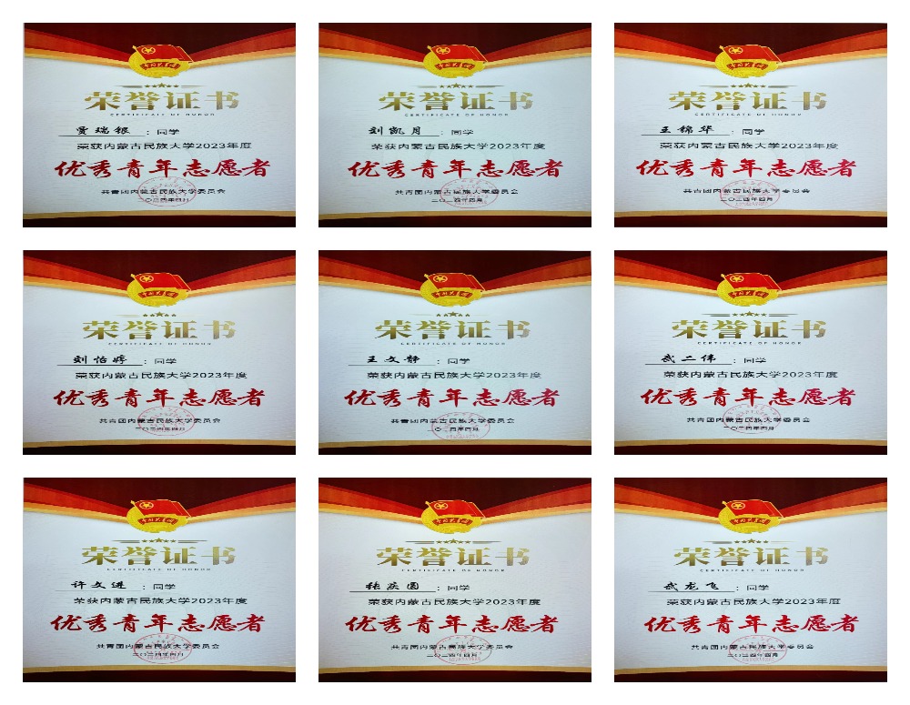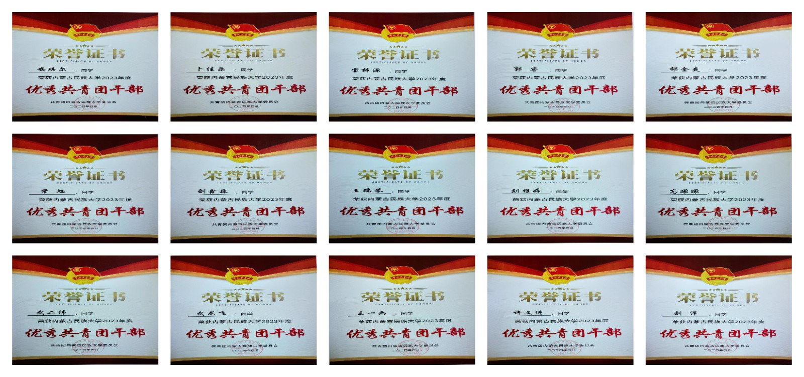 优秀共青团干部(学生):刘洋、常旭、许文进、刘鑫淼、武龙飞、高朦朦、王一画、宝梓源、刘雅婷、武二伟、郭睿、邵金爽、王瑞琴、卜佳乐、安琪尔