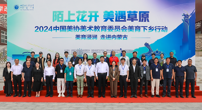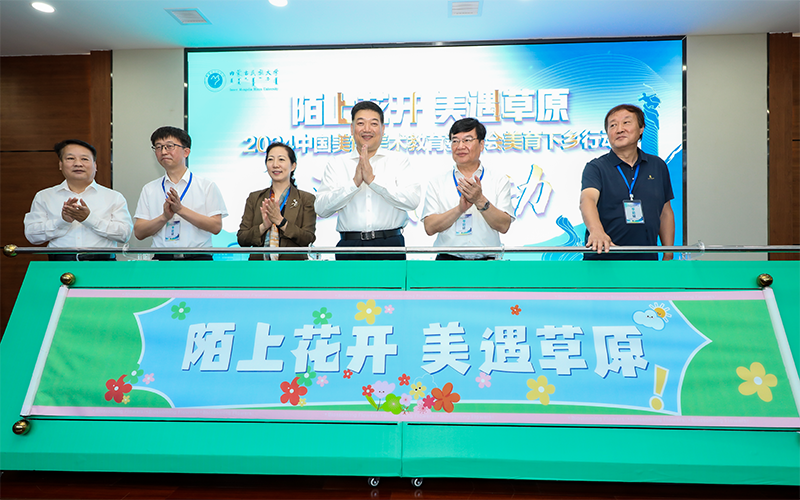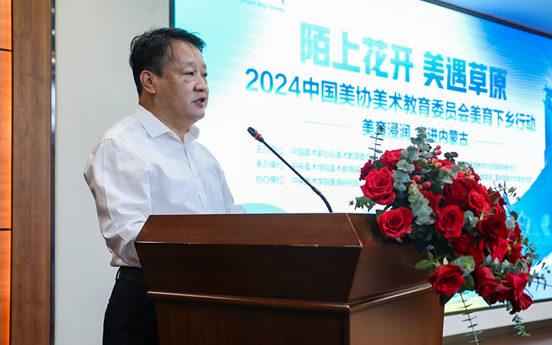 7月20日上午,“‘陌上花开 美遇草原’2024中国美协美术教育委员会美育下乡行动——美育浸润 走进内蒙古”启动仪式在我校图书馆小报告厅成功举办。中国美协美术教育委员会主任、中国艺术教育促进会副会长、中央美术学院党委书记高洪,中国美协美术教育委员会副主任兼秘书长、中央美术学院党委副书记王晓琳,中国美协美术教育委员会委员、湖北美术学院副院长刘茂平;我校党委书记赵东海,校党委委员、副校长裴志利,校党委委员、统战部部长张琪;内蒙古自治区学校美育教学与实践指导委员会副主任、内蒙古师范大学教授石均;通辽市教育局党组书记、局长李海林出席开幕式。开幕式由裴志利主持。