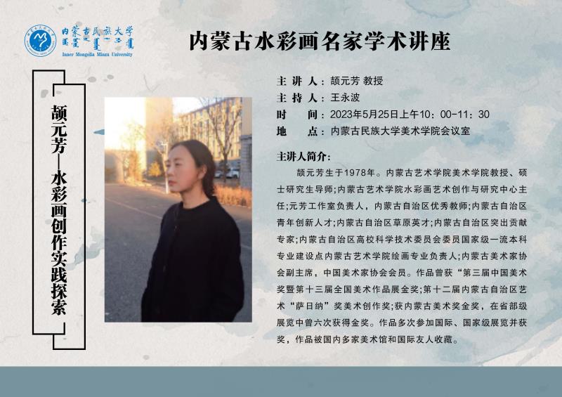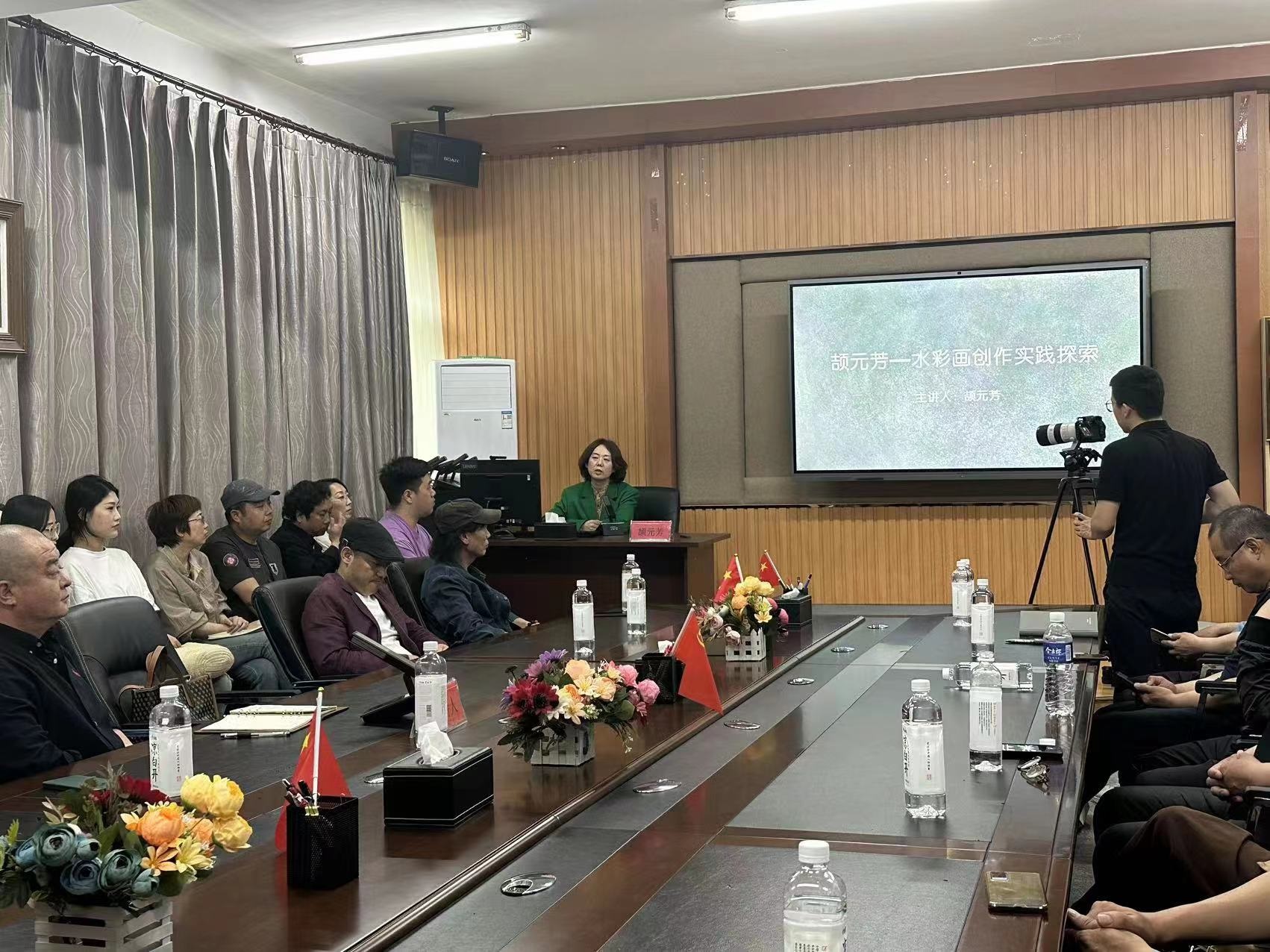 5月25日上午,美术学院邀请内蒙古艺术学院美术学院教授颉元芳在逸夫楼美术学院会议室进行了题为“水彩画创作实践探索”的学术讲座,相关专业师生70余人聆听了讲座。讲座由美术学院院长王永波主持。