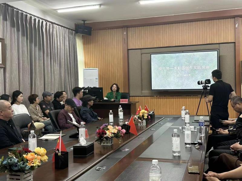 讲座结束后,颉元芳同美术学院师生进行了深度交流并对美术系美术学专业水彩方向的学生创作作品进行了现场实践指导。
