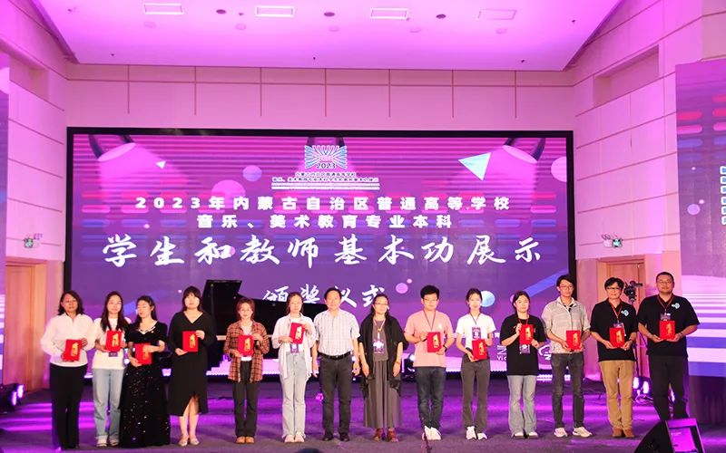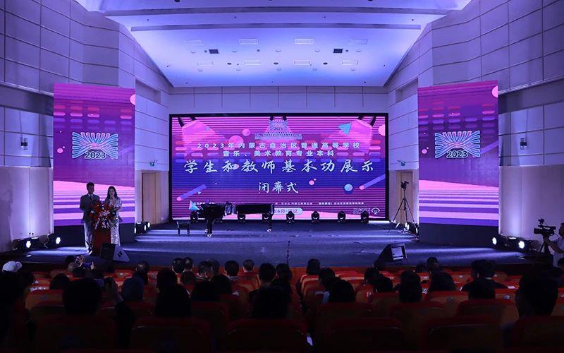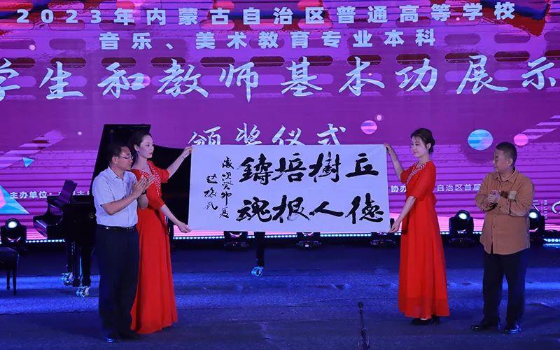 6月21日晚,内蒙古自治区第二届普通高等学校音乐、美术教育专业学生和教师基本功展示活动在内蒙古民族大学圆满落幕。自治区教育厅党组成员、总督学朱宝江,校党委书记、校长赵东海,校党委委员、副校长裴志利,教育厅艺体卫劳处副处长张晓莺,学校教务处处长王泰,通辽市教育局副局长布仁桑以及来自全区高校音乐学院、美术学院比赛的教师、学生和全国各高校的评委出席闭幕式。朱宝江代表教育厅讲话。
