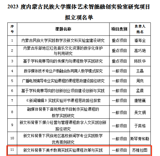 我院教师获批2023年度内蒙古民族大学媒体艺术智能融创实验室项目
