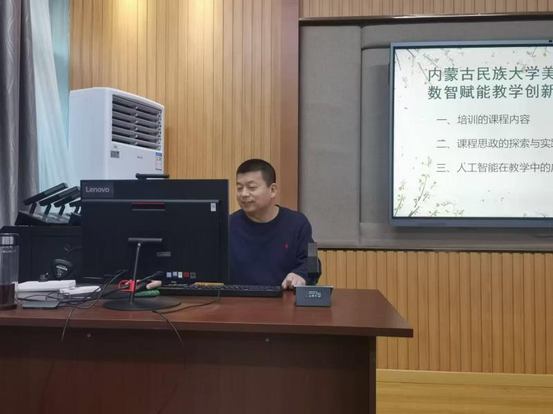 活动中,邹畅老师分享了在上海交通大学培训的课程内容,并围绕课程思政教学的探索与实践展开,针对如何在美术专业教学中更好地融入思政元素,培养具有家国情怀、德艺双馨的美术人才进行了交流探讨。韩继贤老师就人工智能在美术教学中的应用进行了深入交流,展示了人工智能为教育带来的无限可能。