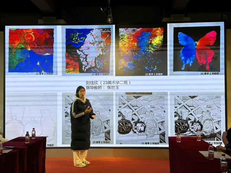 观摩过程中,同学们细致讲解作品创作理念及创作过程,老师们认真审阅每一件作品,对同学们的创意和技法进行专业点评,在肯定成果的同时,也指出了作品中的不足之处,并提出了宝贵的意见和建议。面对面的交流与指导,不仅让学生们受益匪浅,更激发了他们对艺术的热情与追求。