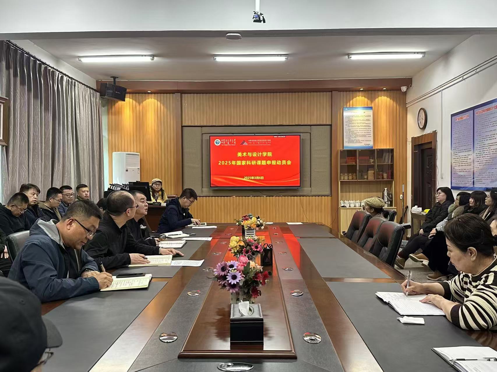为了更加高效地实施有组织科研,调动学院教师申报国家科研课题的积极性, 3月6日下午,美术与设计学院在逸夫楼一楼会议室召开2025年国家科研课题申报动员会。学院党委书记王志辉、院长王永波、党委副书记杨文军、副院长于淼以及学院全体教师参加会议。会议由院长王永波主持。