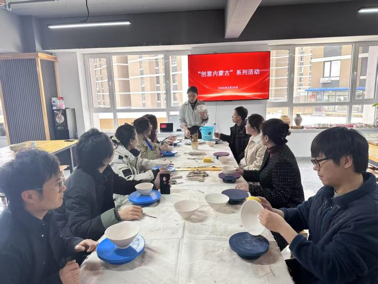 为深入探索北疆文化与艺术设计的深度融合,强化实践教学创新。3月28日下午,美术与设计学院视觉传达设计教研室在学院实践教学基地——福顶窑陶艺体验馆,成功举办“创意内蒙古”系列主题教研活动。此次活动围绕陶艺创作展开,教师们通过陶瓷绘画与拉坯实践,共同探讨如何将地域文化元素融入设计教学,助力民族工艺美术创新发展。