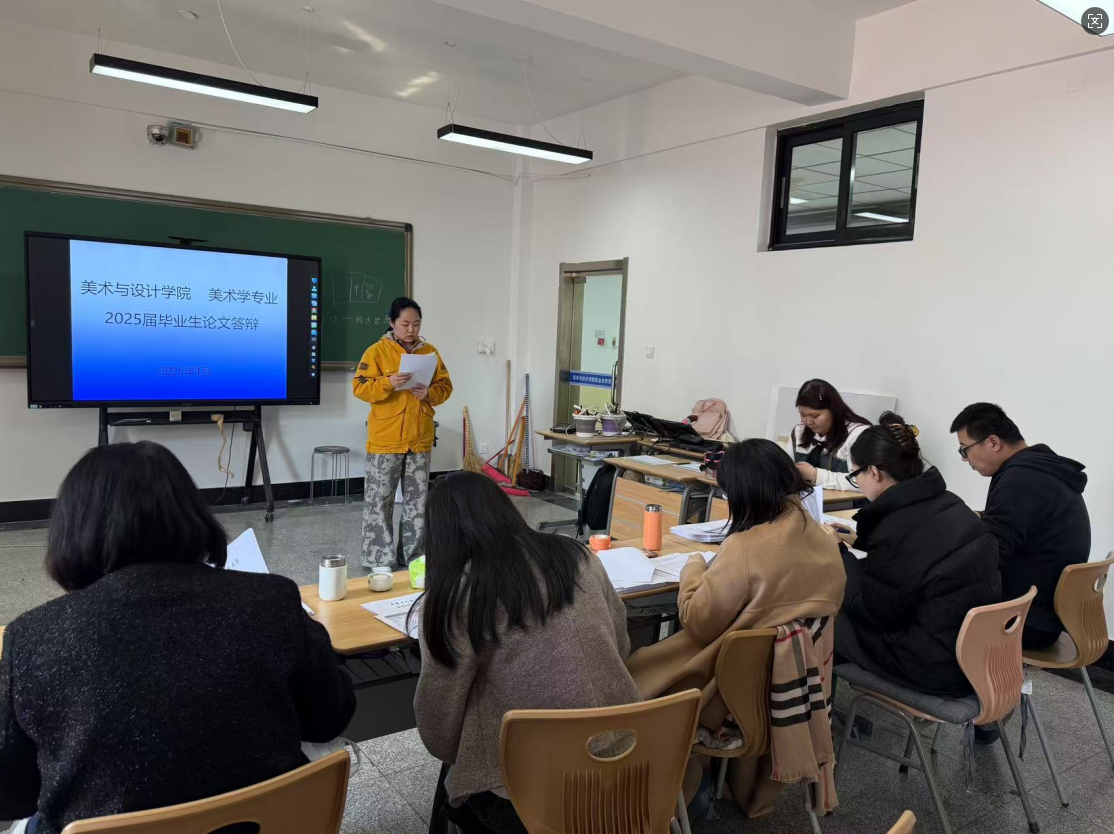 4月2日上午,美术与设计学院美术学专业2025届毕业生毕业论文答辩顺利举行,共由28位评委老师组成答辩委员会,73名毕业生分6组进行。