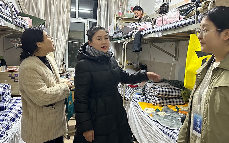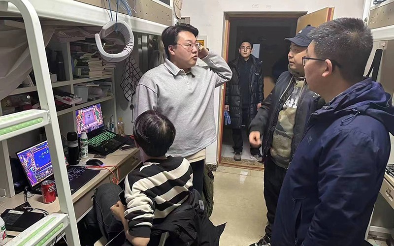 走访中,他们走进宿舍深入学生,与同学们亲切交流,了解新学期同学们假期的学习和生活情况,送上新学期的祝福与关怀。领导老师们到每个宿舍都叮嘱同学们尽快调整状态,开启新学期学习计划,嘱咐大家遵章守纪,注意安全,刻苦学习。同时,老师们针对宿舍安全、卫生以及文化风险等隐患进行排查,并现场督促整改。